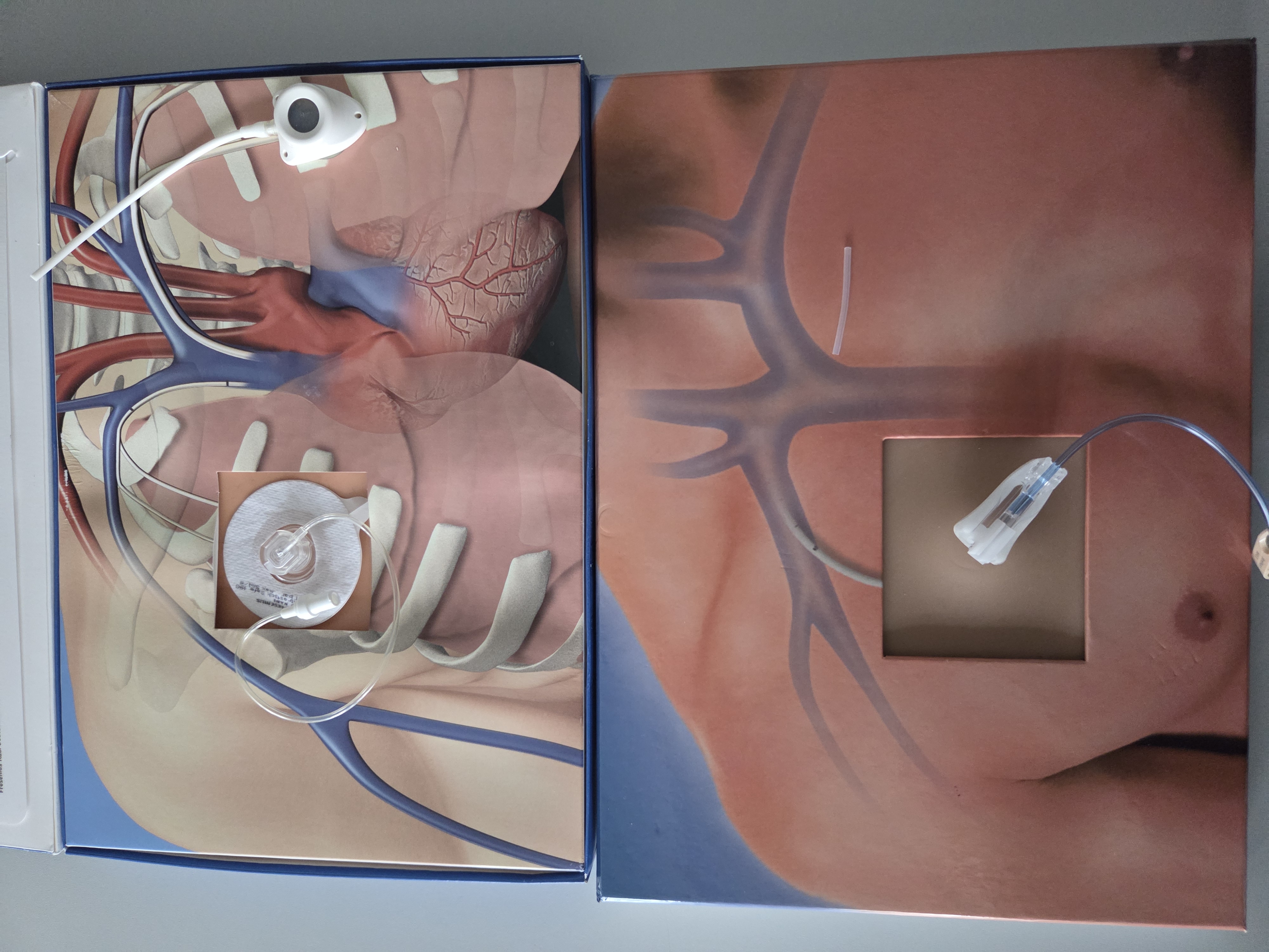 Zum Abschluss des fachlich informativen Vortrages wartete noch ein Highlight in Form eines praktischen Teils auf uns. Wir durften, wie es auch Fachärzte zunächst üben, an einem „Dummy“ das Injizieren und Entfernen einer Portkanüle probieren (s. Bild). Über so eine Portkanüle, die in der Nähe des Herzens implantiert wird, können Infusionen für eine Chemotherapie und/ oder einer immunbiologischen Behandlung direkt in die Hauptschlagader geleitet werden, damit die Medikamente schnell über das Blut im Körper verteilt werden. Das präzise „Anbringen“ dieser Portkanüle war für uns alle wirklich etwas Besonderes.